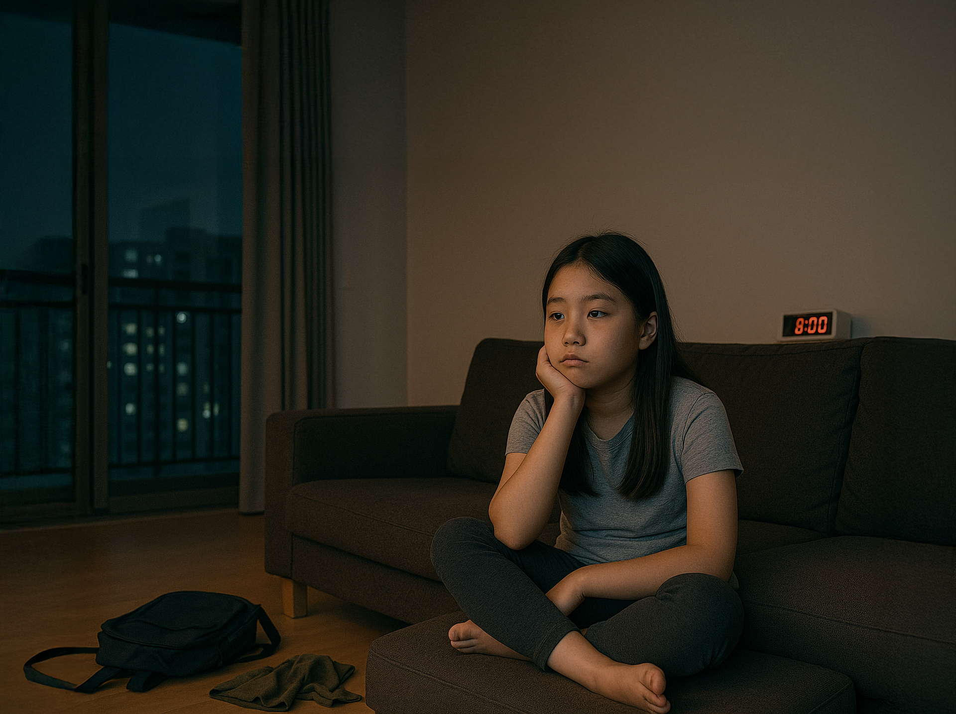 학교가 끝난 뒤, 아이는 집으로 돌아옵니다.